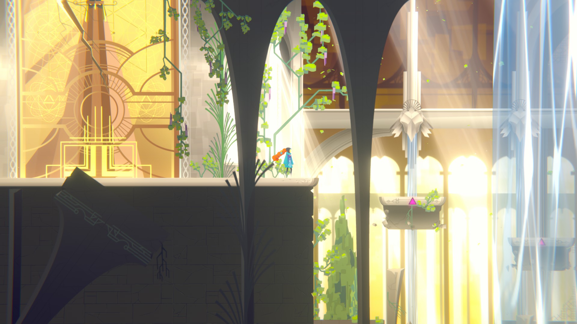 Ina moves with elegance and grace, and her jumps feel feather-like, almost ethereal. She can grab onto ledges, although these are never placed too high, nor too far away to become a pixel-hunt challenge. The controls are very good and responsive, and the game can be played both with a controller, or with the mouse and keyboard. Personally, I played through it with a controller, since I found the default placement of the interaction keys being somewhat unintuitive; however, these can easily be changed from the settings.