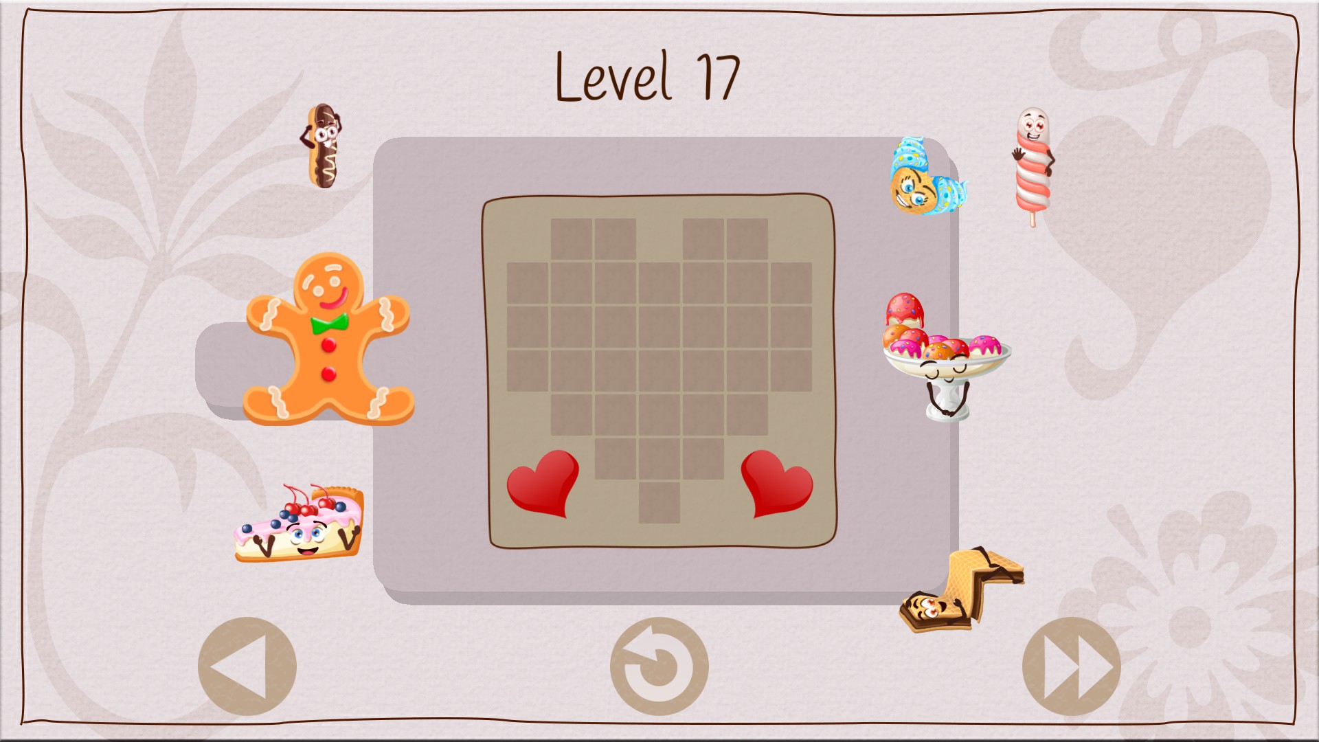 Sweet Collector is an adorably cute puzzle game in which you are tasked to arrange a set of given shapes on a grid, with the condition that in the end no spot remains uncovered and no piece is left behind. It’s basically the same gameplay as Cats Organized Neatly / Dogs Organized Neatly (which belong to a different developer), but this time the cats and dogs are replaced with mouth watering cakes and sweets.