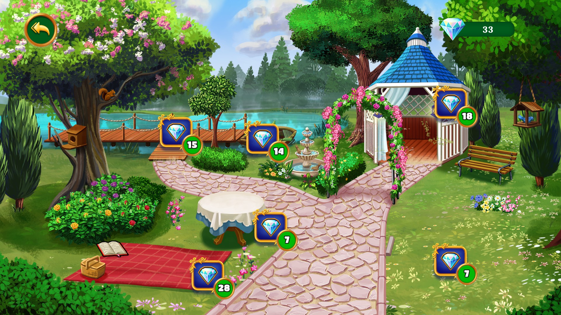 Secret Diaries: Manage a Manor is an 8h enjoyable ride, with non-missable achievements. There is no upgrade mechanic to your kitchen equipment that allows you to spend your earned coins, but the gems you gain for solving levels can be used to purchase upgrades for your garden / park. For 100% completion you will have to replay a few levels in order to get the necessary amount of items of that type required for a certain achievement, but that should roughly take you at most 30 mins above the time you’d otherwise spend on completing all the levels. As usual with GameHouse games, there are three difficulties to choose from (which can also be switched at any time during your gameplay) and the achievements trigger no matter the difficulty mode chosen.
