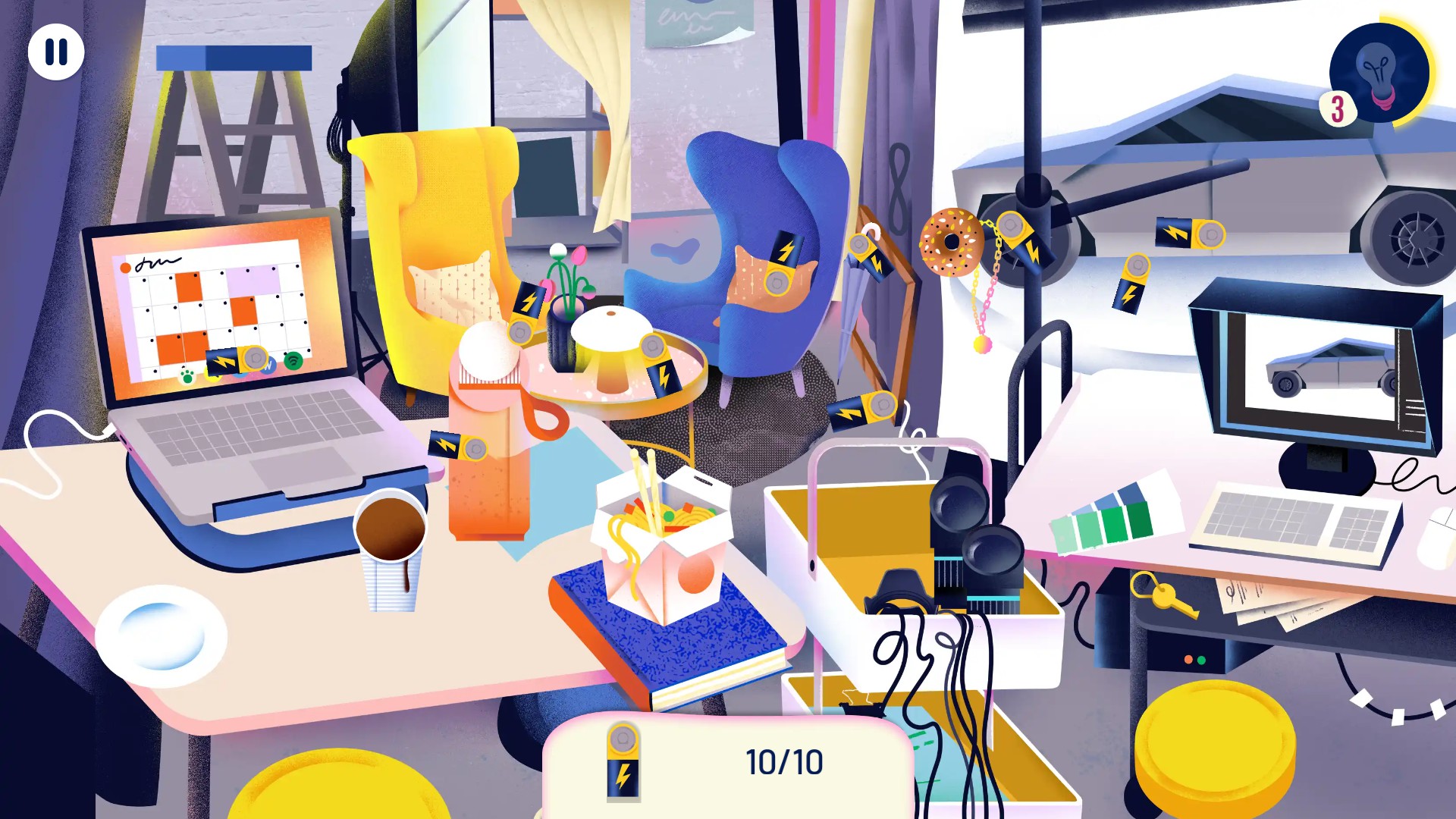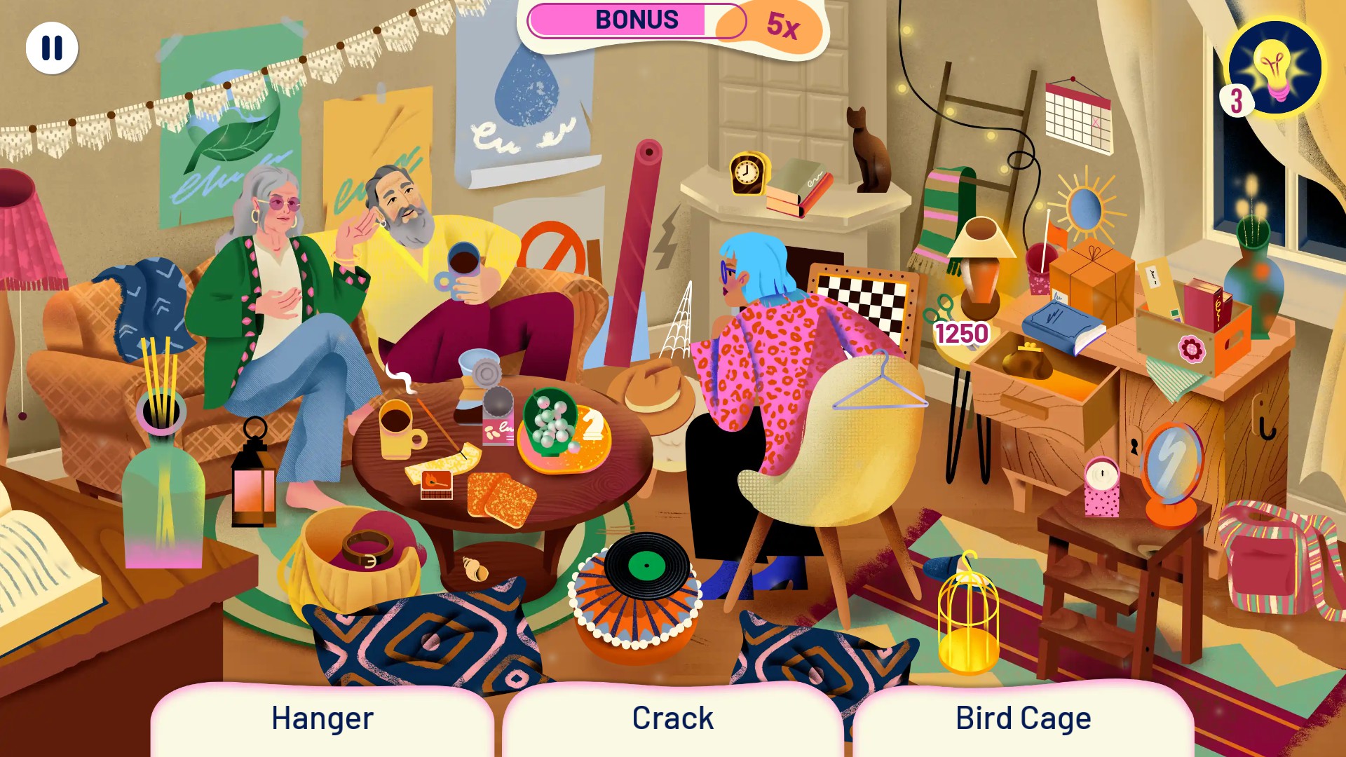 Considering that you currently, on average, get around ten mixed Level 1 and Level 2 objects per scene completion, the game could really benefit from being less stingy with the rewards. The story is nice to follow, but having to replay one level as many times as needed to gather hundreds of Level 1 and Level 2 items, then manually pairing them together in an incremental way really pushes one’s patience and ultimately decreases the fun. On the positive side, the scenes aren’t timed, stacking bonus points are awarded for finding objects quickly one after another, and you can also use up to three hints per scene, replenished every time you replay it. Additionally, the items are quite noticeable in the environment, without appearing glued onto the background. Their art style is clean and minimalistic, making even their silhouettes easily identifiable.