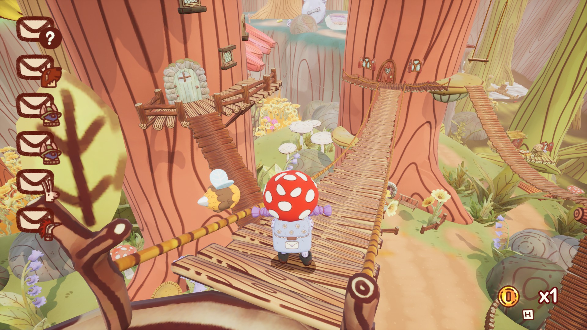 Mail Time is all about being small in a big world and doing little good deeds with a big impact. All characters (including yours) are like miniature representations of animals (or a human in your case), and everything surrounding them or you looks supersized. Running through a field of giant sunflowers, jumping on bouncy mushrooms to reach higher heights, gliding down from tall trees or feeling like a tiny ant running through someone’s picnic spread are just a few of the satisfying things you will get to experience in-game. The environment is simply beautiful. The map is not exceedingly large, yet it contains areas of different biomes. There’s no teleport option and you won’t even need one because there are lots of shortcuts that you can take.