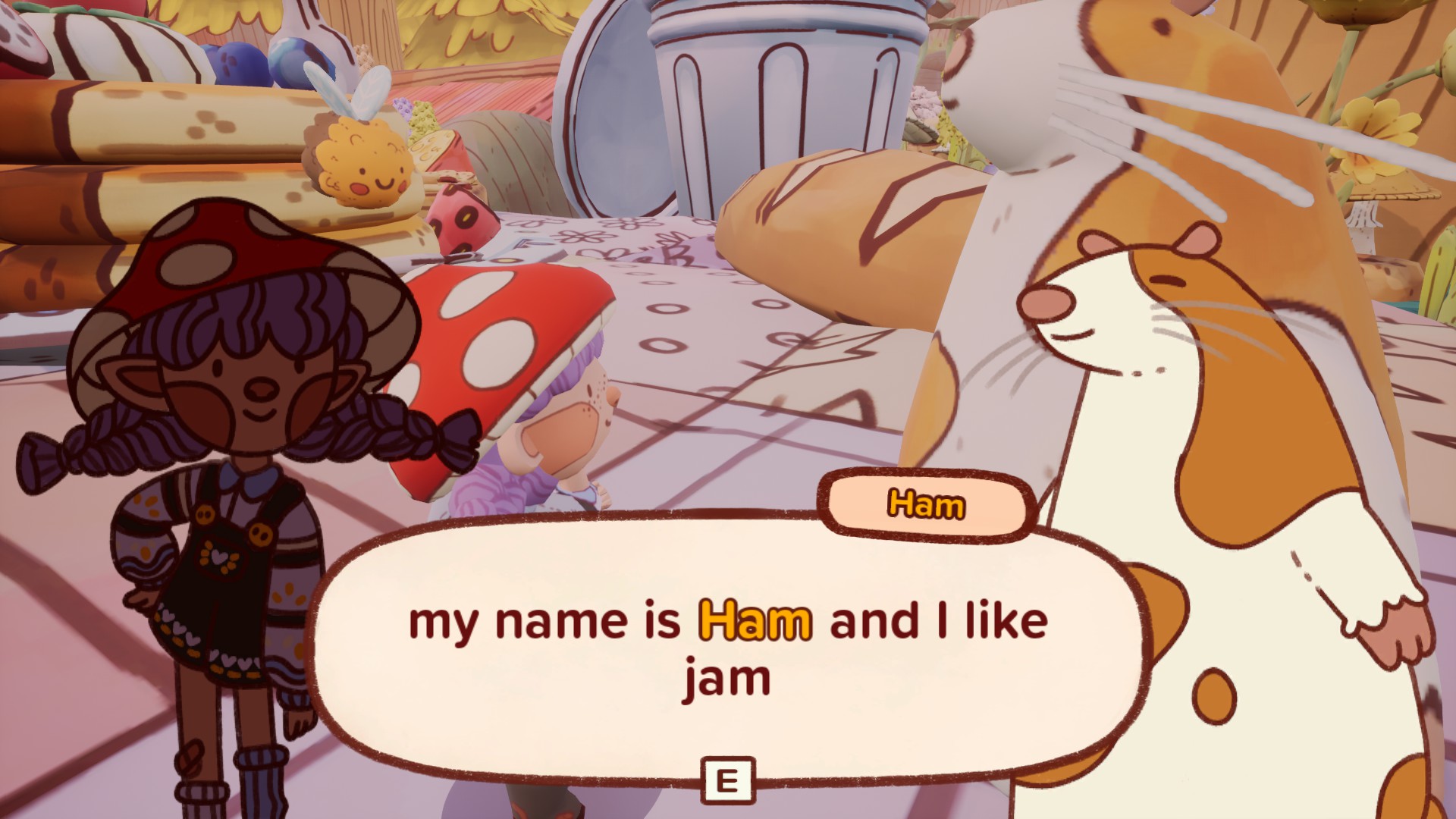 At its core, Mail Time is a blend of a walking simulator / platformer. The gameplay loop consists in talking to various characters in the game world, picking up their letters and delivering them to their recipients. Some of these characters will additionally give you some side quests to collect and bring them certain items. There is no story per se (the game starts rather abruptly with your first delivery and a small tutorial explaining what you are expected to do), but the essence of the narrative lies in the background stories that you’ll get to experience when talking to the characters. The dialogues are extremely funny, filled with witty replies and often have an edgy style. The language differences between the way the characters speak give each of them individual personalities and a special kind of flavor, depending on the place they hold in their little community.