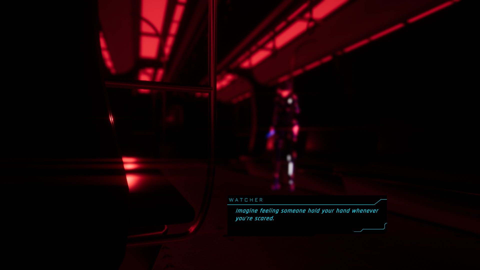While the narration is linear (there are no branches), exploring the memory fragments isn’t. Just like in reality, when a memory can trigger another memory, Watcher will scramble through Iris’ memories back and forth, despite them being unlocked in a sequential (ordered) way, one at a time. Navigating the memories also allows in some specific circumstances location navigation (to get past a locked door, you go back one memory, move your character to the target location and then go forward to the desired memory). Like in a Tarantino movie, the memories are not visited in chronological order; they’re scattered over time and space. The game also heavily uses deja vus in two very creative manners. In some dialogue with cryptic choices, these options are actually fragments of what other characters said earlier in the game. Reading them is already enough to trigger a deja vu in the player, who will then try to connect that event to the current dialogue and direct the conversation accordingly. The second one presens scenes already shown to the player, but modified and extended with insights that reflect the realizations that specific characters reached.