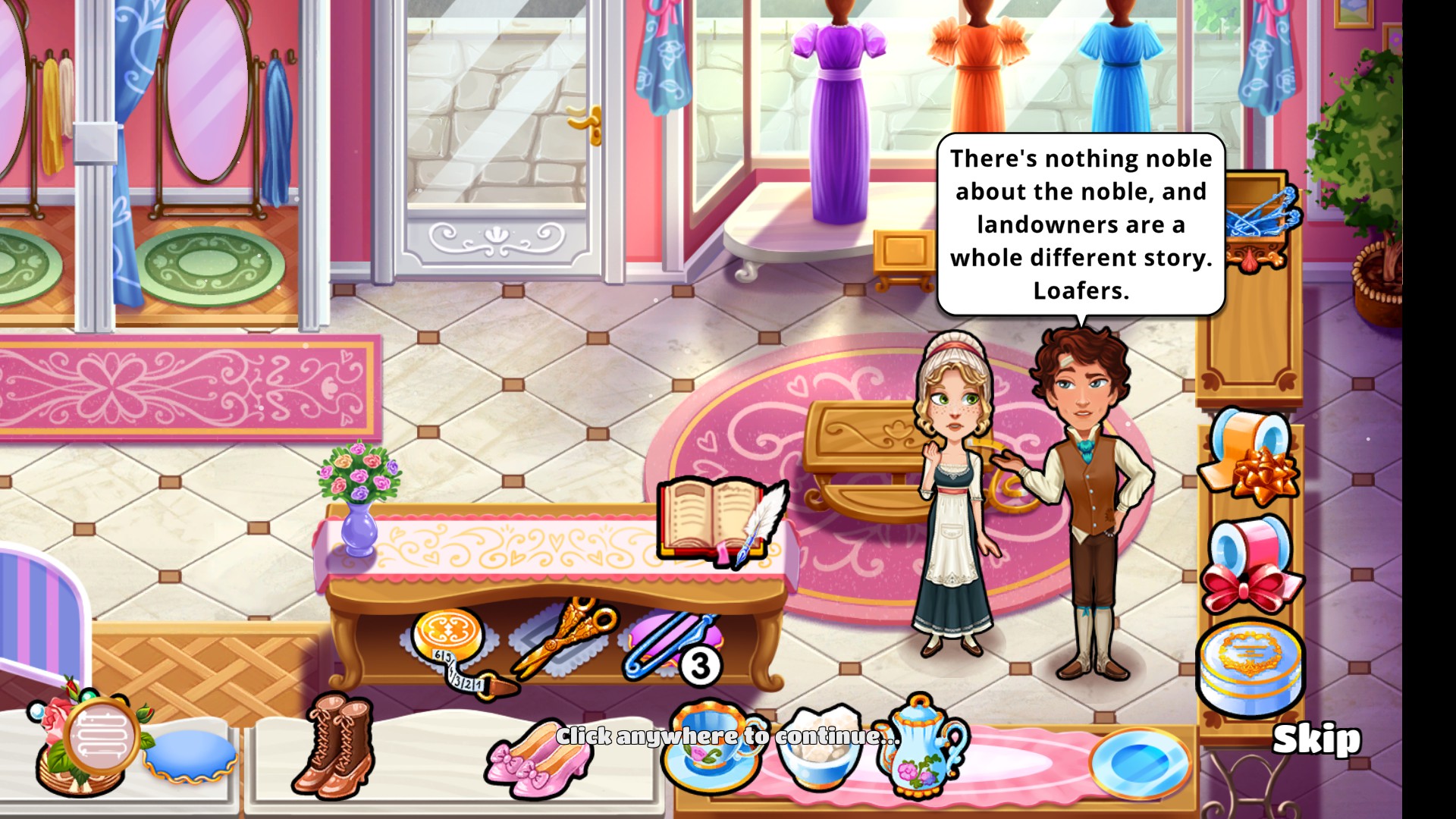The second installment of GameHouse’s Secret Diaries time management series is set in the same universe as its predecessor, Secret Diaries: Manage a Manor, but centers its story around a different character, while also preserving the main cast from the first game. Secret Diaries: Manage a Manor tells the story of Jane Ashford coming to Red Orchard to find a husband before the end of the season to fulfill the terms of her uncle’s will and thus receive her promised inheritance, but eventually finding love instead and giving up on everything else.