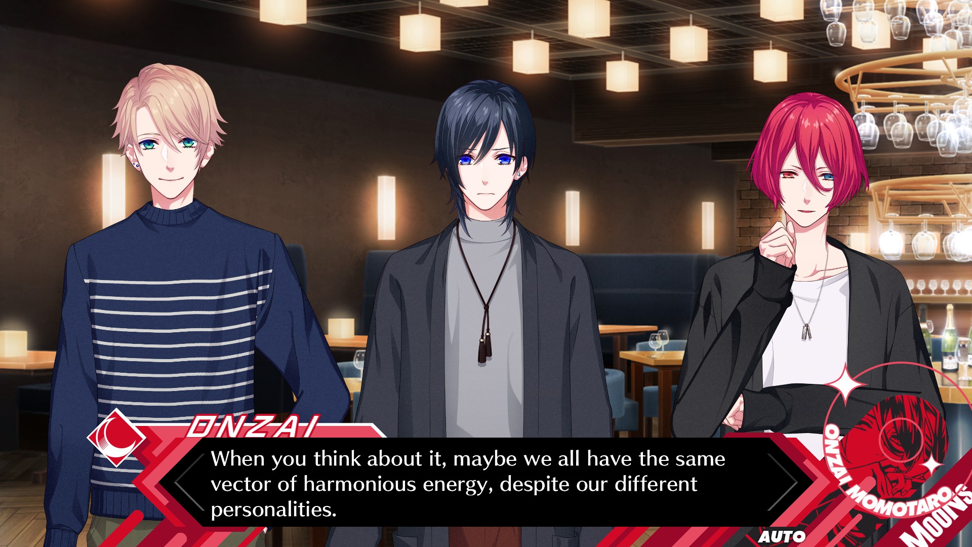 Getting used to the individual personalities of each of the boys might seem difficult in the beginning, but the game facilitates this by introducing them one by one, based on their original group. Each of the boys has a unique personality that stands out from the rest of the group in a specific way and you’ll also get to know them one by one through individual conversations, but also through their interactions with the rest of the group, which are always adorable. There’s a lot of banter between them and plenty of funny and cheerful exchanges, topped with some heartwarming one-on-one dialogues.