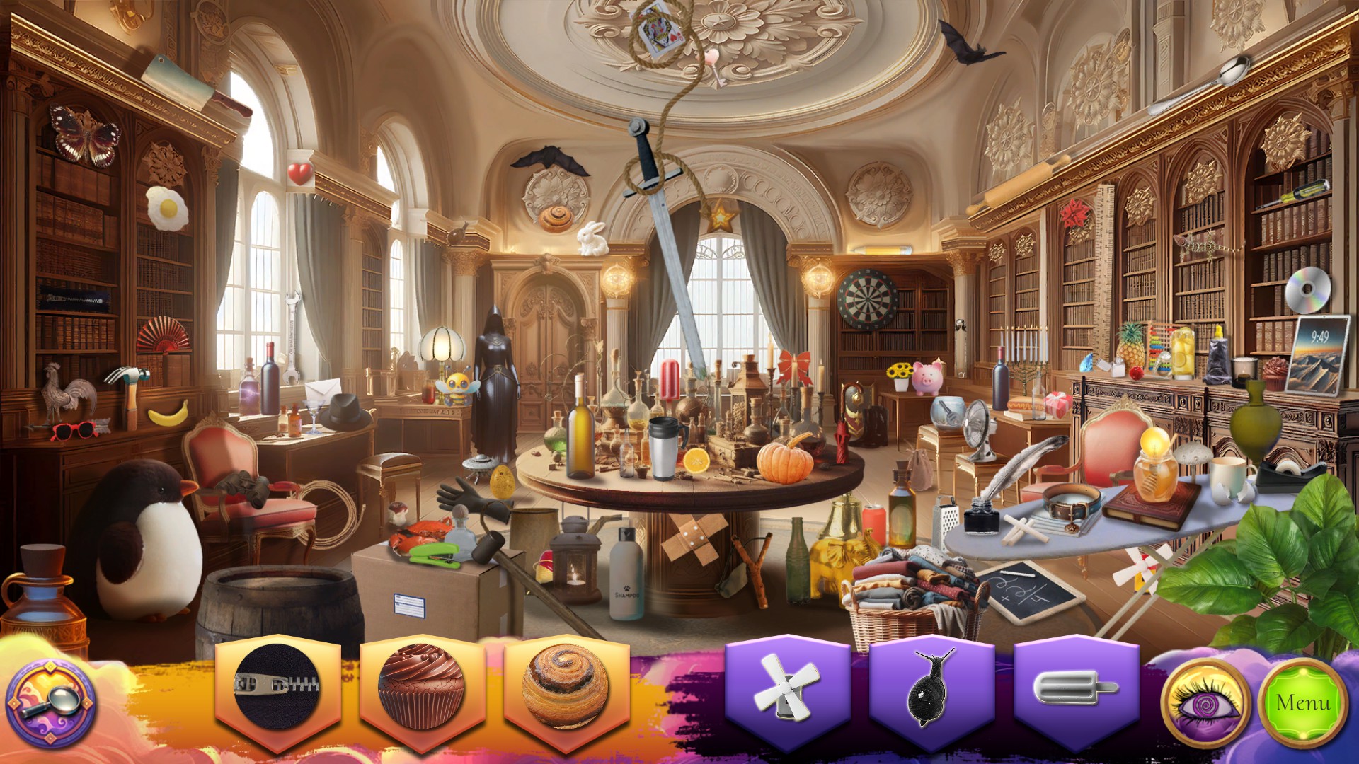 The “cursed objects” premise cleverly explains why we must search for items within a hidden object scene. It’s a small but satisfying touch that not many other games offer. The light-versus-darkness theme also plays directly into the gameplay. Instead of traditional word lists, each scene features two categories of items. Light objects appear in the bottom-left corner, with their image shown only partially, while dark objects appear on the right as dark silhouettes.