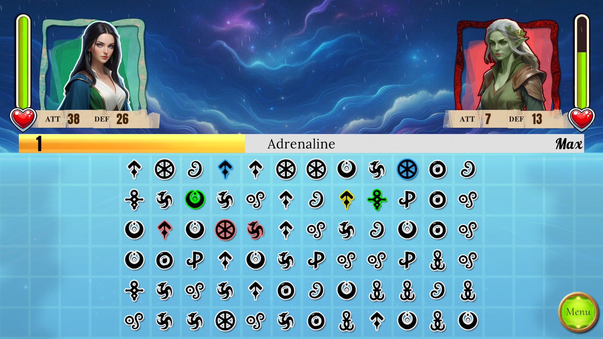 As in most hidden object games, you’ll find collectibles, sub-areas within scenes, and objects that need to be combined. The game alternates between story segments, hidden object scenes, and minigames, but introduces a brand new layer with its turn-based battle mechanic. These battles use a variation of Match-3 gameplay, where matching two or more adjacent tiles fills an action bar. A light deck-building system lets you spend coins earned from scenes to acquire new cards, which can be used during battles to boost attacks, restore energy, or weaken enemies when this action bar is full. Other cards that you can purchase act as one-time upgrades for hidden object scenes, such as reducing hint recharge times or displaying how many collectibles remain.