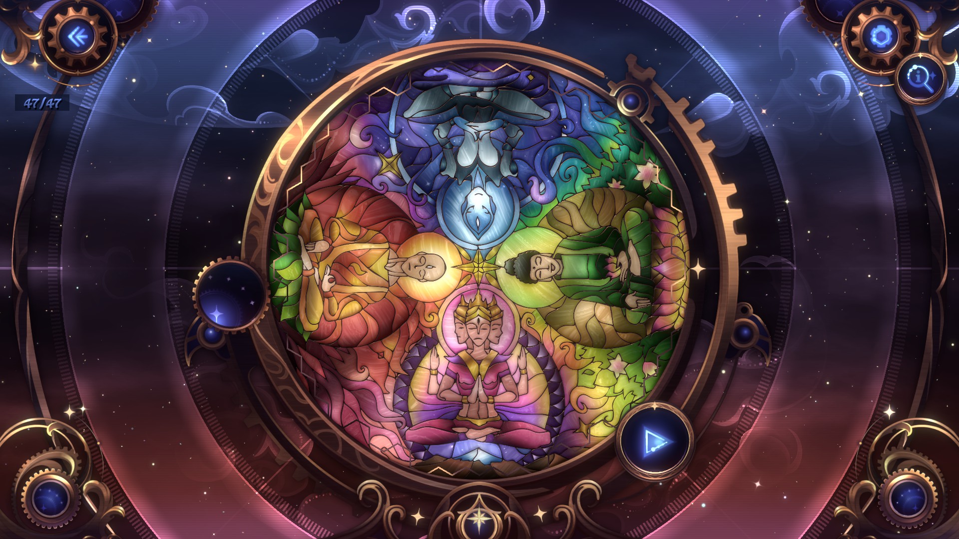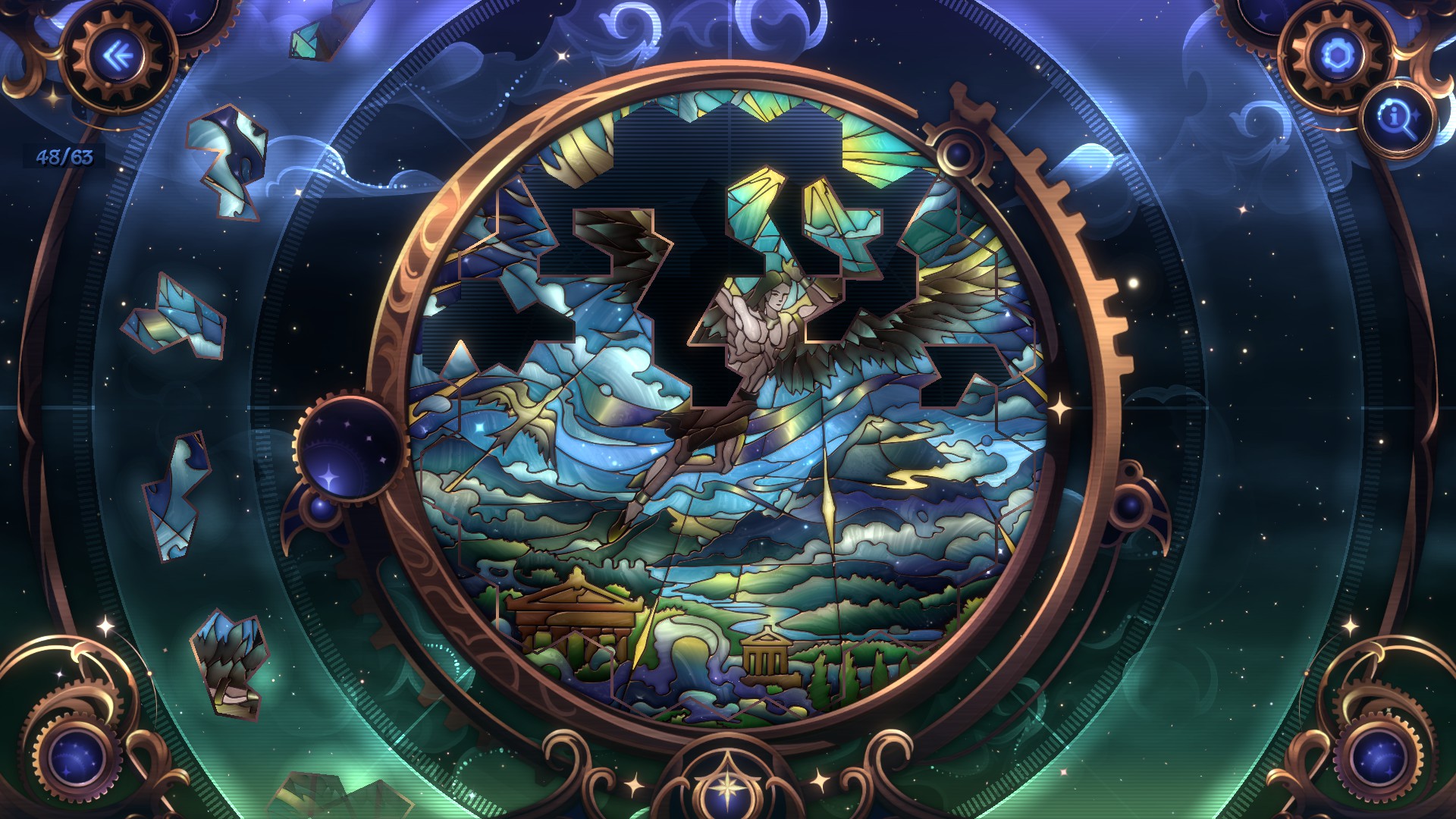 Glass Masquerade 4: Constellations is a strong addition to an already excellent jigsaw puzzle series. From a design perspective, it does not differ dramatically from its predecessor. While Glass Masquerade 3 focused on nature- and culture-themed puzzles, Glass Masquerade 4 organizes its content into seven constellation-based sets, each featuring lighter tones and distinct themes (such as love, knowledge, time, etc.).