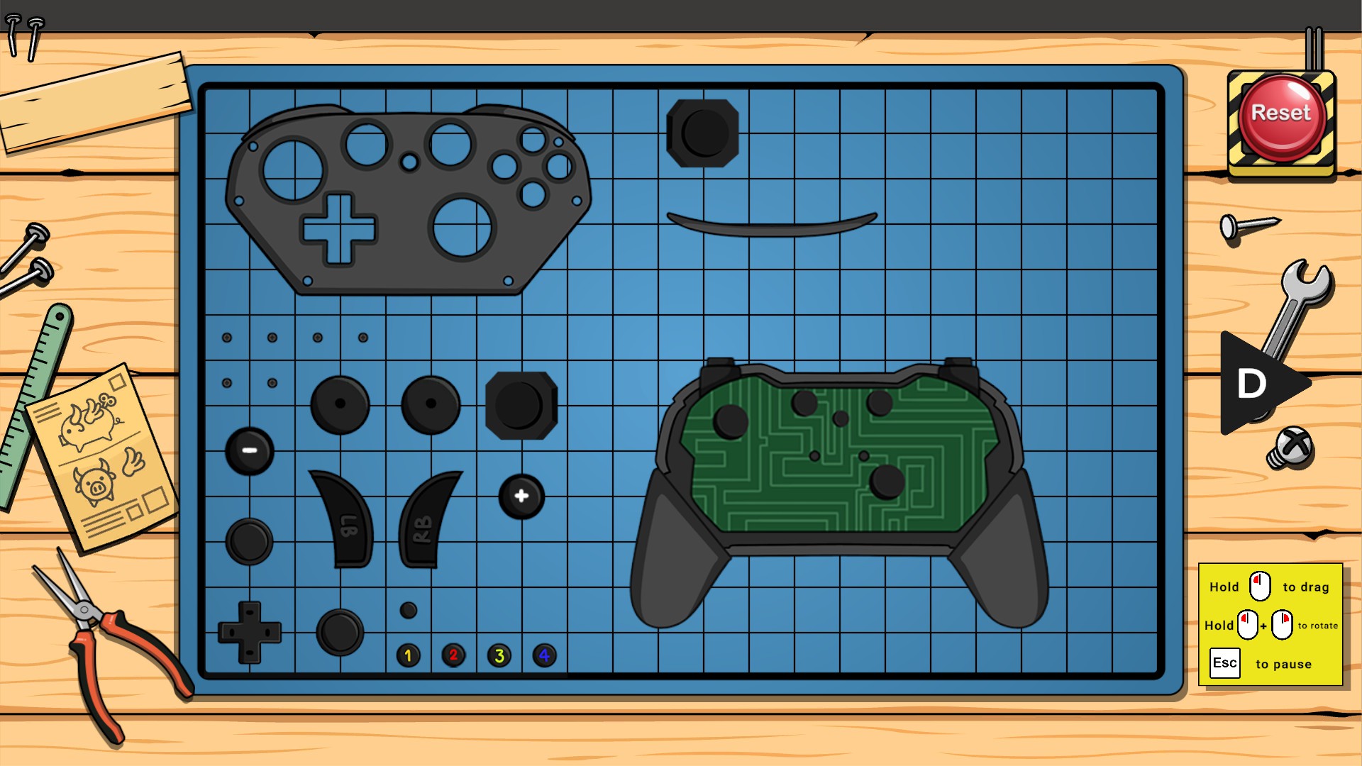 To help the player, the game provides clear visual feedback during assembly. Parts that can be combined are highlighted with a green background when hovered over one another, while pieces that cannot be rotated are marked with a yellow background. If two parts cannot be joined at a given moment, the game displays an explicit error message, and it does a similar thing when a piece is oriented incorrectly. While this doesn’t eliminate the difficulty of more complex levels, it does make brute-forcing them faster and less frustrating.