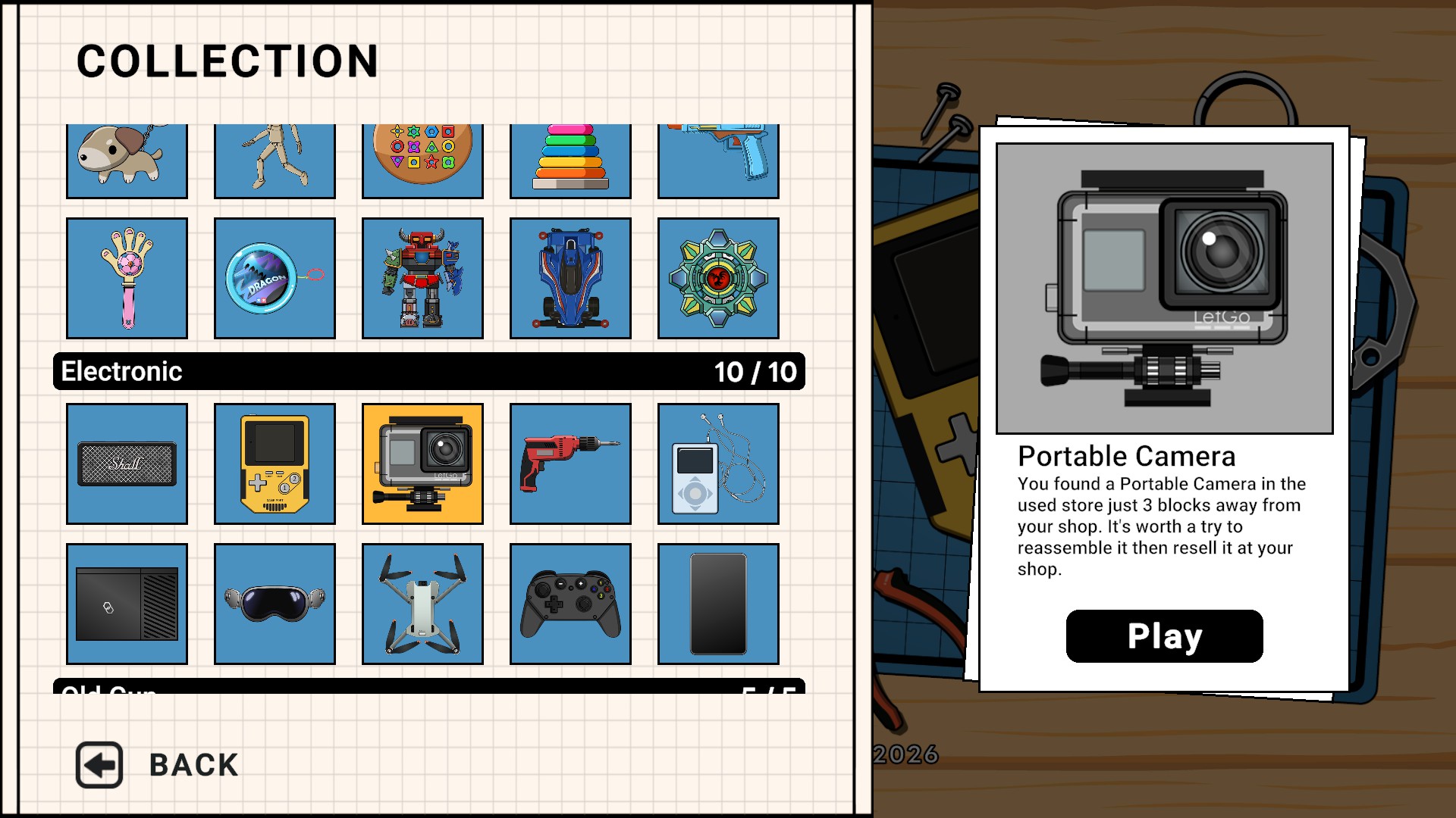 The game currently features 30 levels, spanning a variety of objects such as toys, electronics, and guns. Some levels add extra steps, requiring you to clean rust or dirt from the components before assembly. In most cases, the process is fairly straightforward, though roughly a third of the levels offer a more substantial challenge. You’re not shown what the final object should look like (unless you peek at the Collections tab, which displays a small reference image), but that isn’t a big issue. Starting with obvious connections (such as attaching a robot’s legs to its body) usually provides enough momentum to reach a solution. As you progress, the remaining pieces begin to fall into place, and their purpose becomes clearer. That said, a handful of levels feature many small, similar-looking parts whose correct placement can be quite difficult to deduce. For me, levels involving guns or complex electronics were especially challenging.